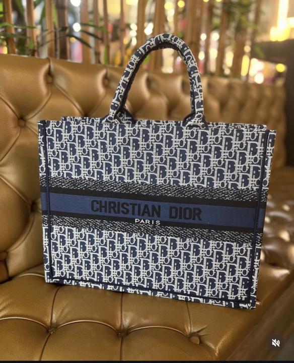 CHRISTIAN DIO.R BLUE MONOGRAM ZIPPER TOTE PREMIUM WITH DUST BAG