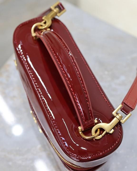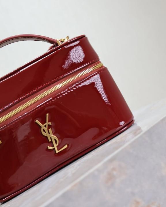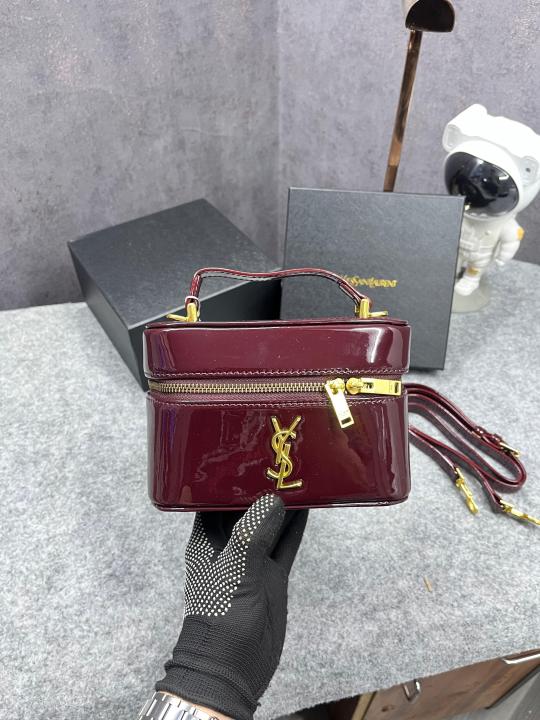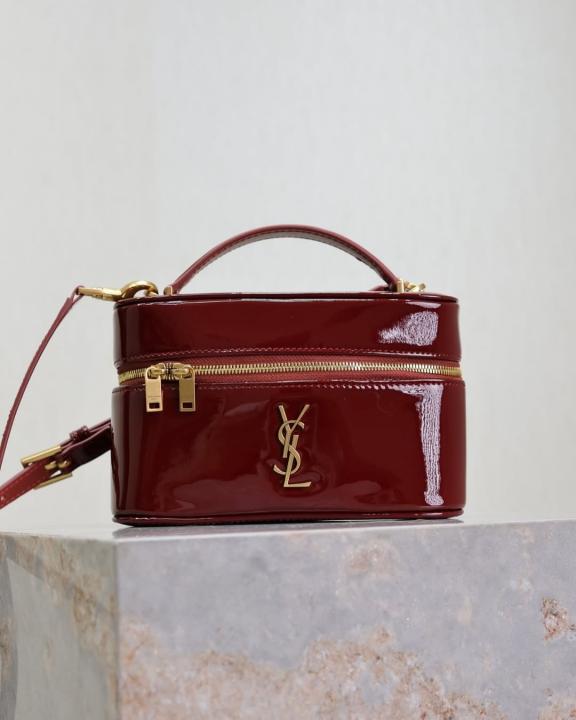 Ysl Saint Laurent Burgundy Gaby Patent Leather Vanity Bag With OG Box & Dust Bag 77106 Mirror Burgundy